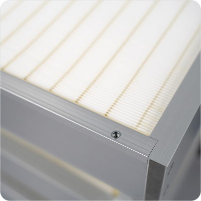 0.3μm 기준 99.97%이상의 포집효율을 가지며, 반도체, LCD, 제약등의 높은 청정도를 요구하는 제조 공정에 적용된다.